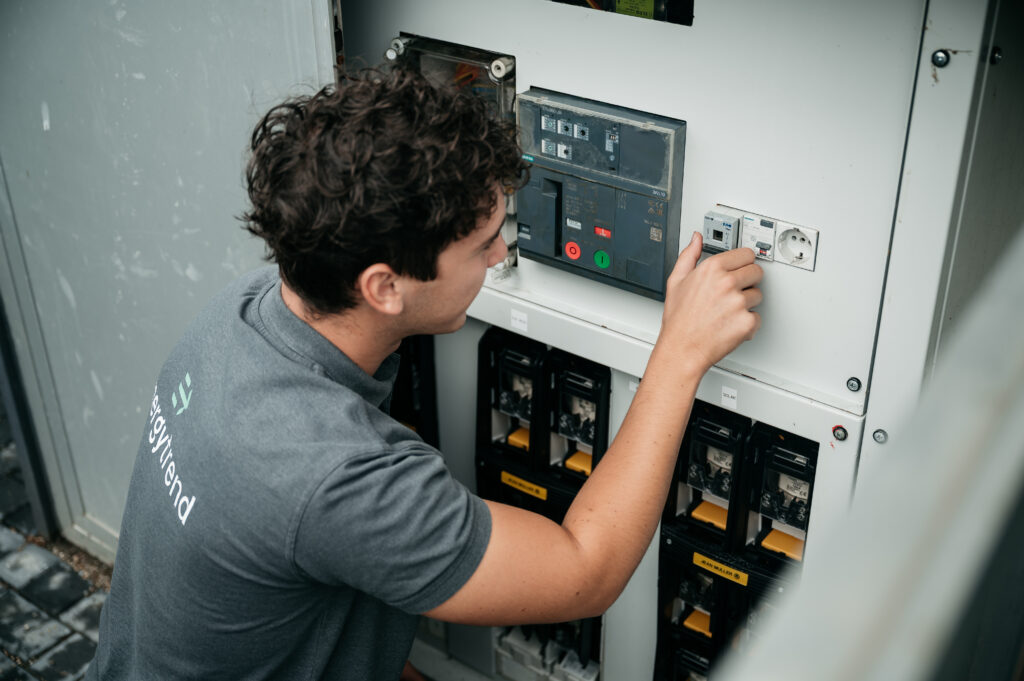 Een energiemanagementsysteem (EMS) is een klein apparaat dat in jouw hoofdverdeelkast wordt geplaatst. Het haalt data op over jouw energieverbruik en de energie die je opwekt, stuurt energiestromen in jouw bedrijf op een slimme manier aan en maakt het mogelijk om te handelen op de onbalansmarkt. Zo krijg je grip op energie en verlaag je jouw energiekosten.